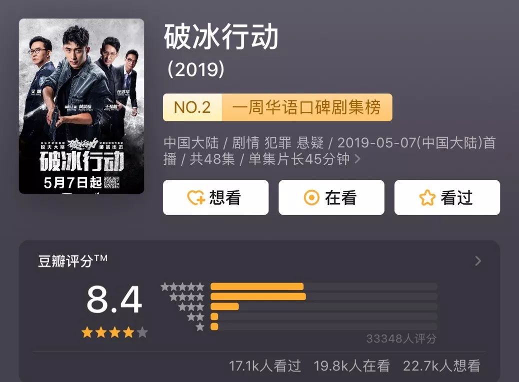 《破冰行动》以8.4分的成绩成为今年古晨为止豆瓣最下分的国产剧,导演刘璋牧慨叹:“通通的辛勤皆出有白费,人逝世所经历的,所教到的通通末极皆将正正在我们的做品里支光!”