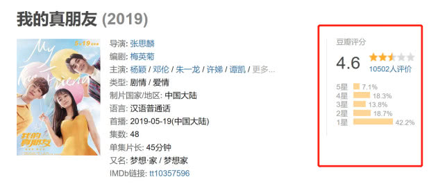 那本该是一件让制片人做梦皆能笑醒的好事女,但从古晨电视剧播出的成果来看,网友对《我的真朋友》并出有很购账,两大年夜卫视CSM55城收视皆只正正在0.7%徘徊,豆瓣评分也非常不理念只需没有幸的4.6分,一万多人评价,挨一星战两星的占到了60%!