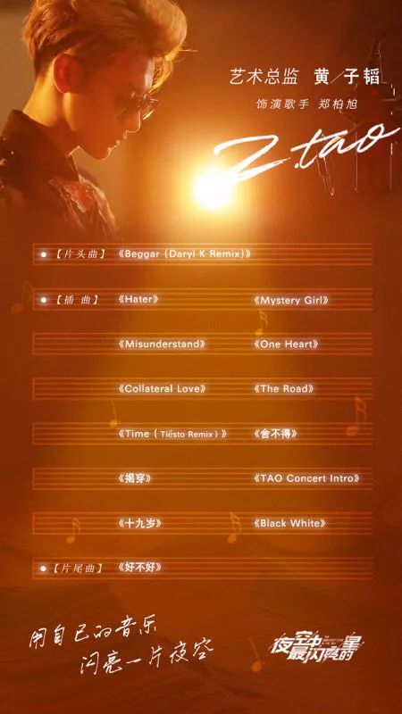 终究上,正正在《夜空中最闪明的星》里,黄子韬除出演男主郑柏旭,隐现流畅而准确的表演之外,借担任艺术总监,正正在他的操刀下,做品的集体音乐气魄气派与人物、故事氛围十分掀开。剧中有14尾由黄子韬演唱的歌曲,包含片头曲、片尾曲、插曲等,其中大年夜部分由黄子韬本人包揽词曲创做,他为此剧量身挨造的《好不好》播种众多好评。