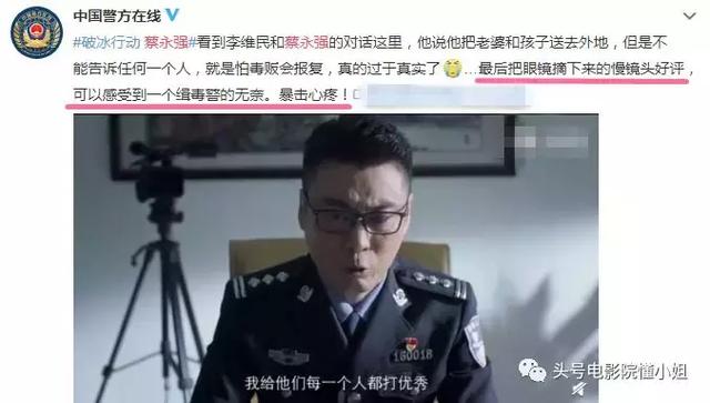 那一段表演也获得了无数称道,其中,公安部动静中心,公安部治安打点局平易近圆微专“中国警圆正正在线”也转支了那段戏,称道“最后把眼镜戴下来的缓镜头好评,可以感到传染到一个缉毒警的没法。暴击心疼!”