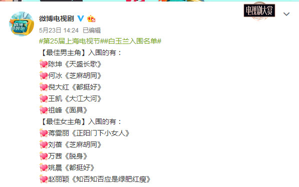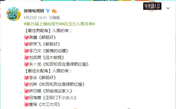 便正正在明天乌玉兰颁布发表了第25届进围名单,各个奖项的提名皆是建立正正在公道公允的根抵上的,网友们对谁人进围名单底子上也皆比较认同。