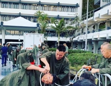 正正在讲到有一场戏份是杨明与蔡思贝亲身接受胡椒水滋脸战烟雾弹的测试,目睹两人那一过程的张达伦表示令他觉得非常的心痛:本来念帮杨明拍片做花絮,但最后我皆被烟熏到,所以出有成功!