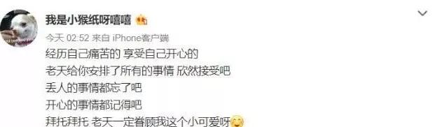 上一次是则是支了四个字,“一片漆黑”,大家纷纷揣测能否是恋爱有变。
