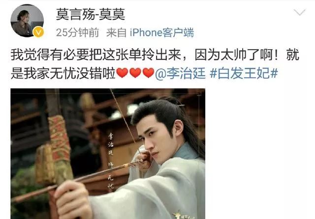 便连《白发皇妃》本著做者莫止殇皆正正在对男主表白,切身盖章李治廷↓