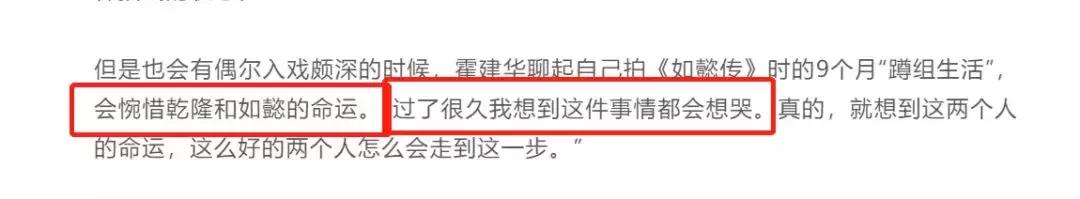 近日,霍建华接受采访时便讲到了谁人成就,他讲刚演完《如懿传》有些从角色里做出有出,会替坤隆战如懿的命运感到惋惜,以致过了良久念起那件事借是会念哭。