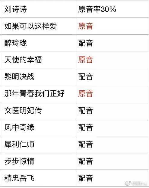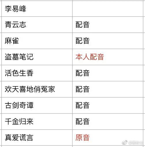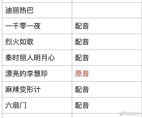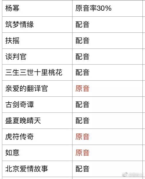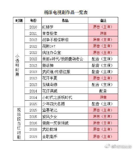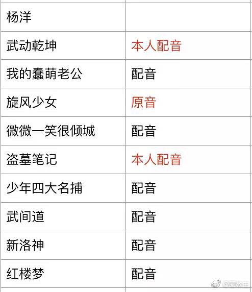 不过,杨洋的粉丝对那份统计功效实在没有认可,表示《悄悄一笑很倾城》战《黑楼梦》皆是他本人本声,而且从2014年后的剧底子皆是自己配音。借有粉丝掀出了杨洋出讲至古出演的电视剧做品及本音情况一览表,力证大年夜V宣布的数据不准。