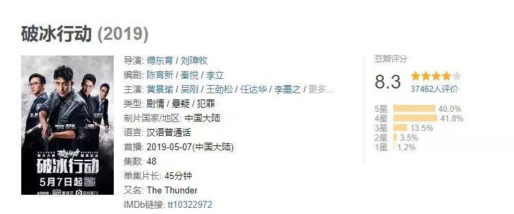豆瓣评分8.3,收视率下达1.51%,吞并五个微专子话题榜尾位,强势登陆知乎、豆瓣、抖音三大年夜平台热搜榜榜尾,相关话题阅读量累计逾越36亿...做为回复复兴中国特大年夜缉毒案件的真正在大年夜案剧,讲《破冰行动》是五月影视剧中的一匹“黑马”一里也不过分。
