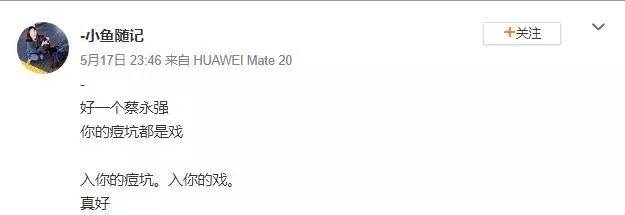 与此同时,蔡永强给到的线索又出有是那么直接,比如正正在评价陈声誉时,“优点偶尔候也会成为缺点。”那些频出的金句也让网友喊话可以出一本“蔡永强讲话之讲”。