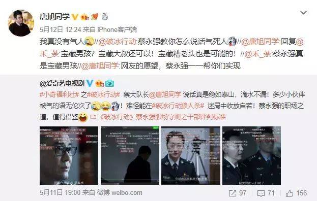 剧中是逻辑缜密,信奉坚定的蔡永强,剧中的唐旭是有梗,耿直的“宝躲大年夜叔”。剧播期间,唐旭经常正正在微专上战网友互动,战网友交流角色的感到传染。
