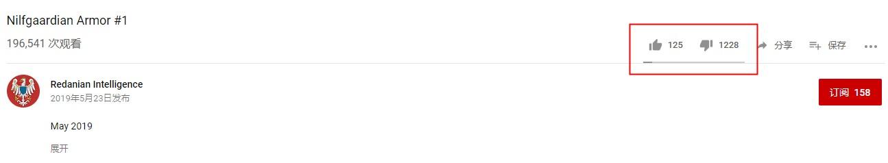 截至到支稿时,YouTube上那段视频的里赞战好评比例是125:1228,相好了十倍。
