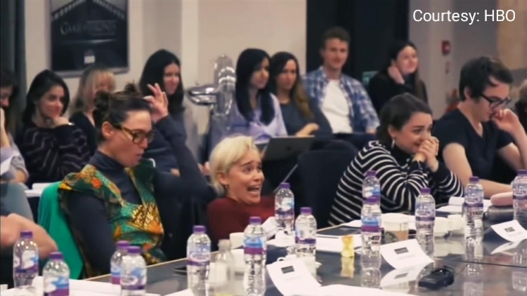 《权益的游戏》纪录片《最后的守视》正正在末极季大年夜结局后正式上线,片中纪录下了许多演员正正在剧本围读会上流泪的一幕,特别是当读到雪诺正正在铁王座前杀死龙妈的一幕时,雪诺一时易以信任,诧异又难过。当旁乌读到“《权益的游戏》 齐剧终”一句时,齐场喝采鼓掌,许多人皆流下泪水。
