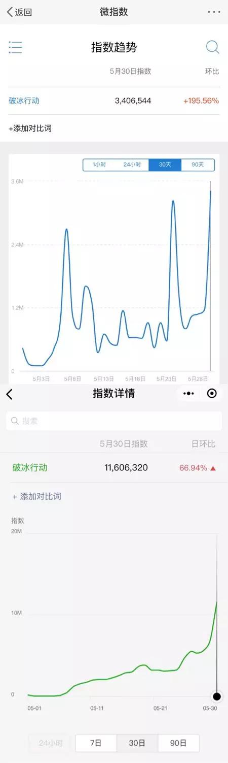 按照微专指数(5月1日—5月30日),《破冰行动》指数趋势的四大年夜高峰分别显现正正在5月7日、5月10、5月24日战5月30日;微疑指数上(5月1日—5月30日),《破冰行动》指数趋势的三大年夜高峰分别显现正正在5月19号、5月26号、5月30日。那些峰值与《破冰行动》豪情触支里的释放底子契合。