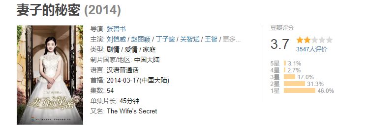 比如很少有人记得赵丽颖曾正正在2014年播出的《妻子的秘密》中饰演江家担任人江百开,借是同伴刘恺威呢!真正在那部剧的成绩借出有错,收视率6.14%,是同时段的冠军。