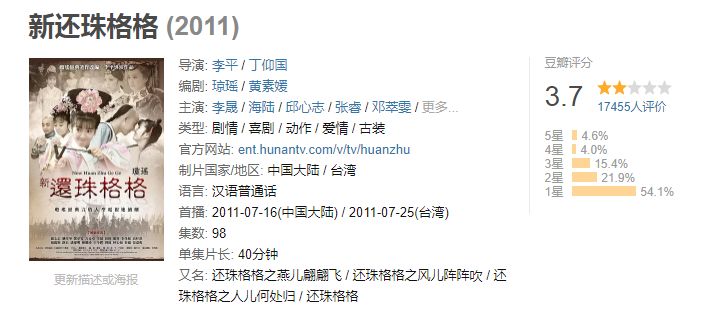但是老版珠玉正正在前,给大家留下了过火深化的印象,新版中不论是练体操的小燕子,对眼的紫薇,借是被改得面目全非的剧情,皆让人直吸辣眼睛,豆瓣评分3.7真的非常客不雅观了!