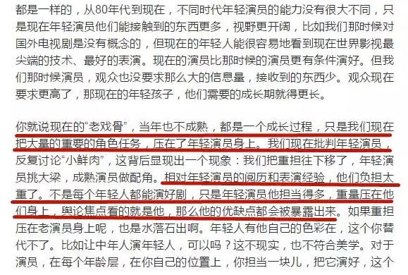 谜底其实不是的,王劲紧教师也曾正在那一面上给过答复。年青演员经历少、阅历的工具也少,承担的却太重;许多反派、副角之以是超卓,是果为那些演员皆是阅历过舞台锻炼的,承担的工具也比力少。