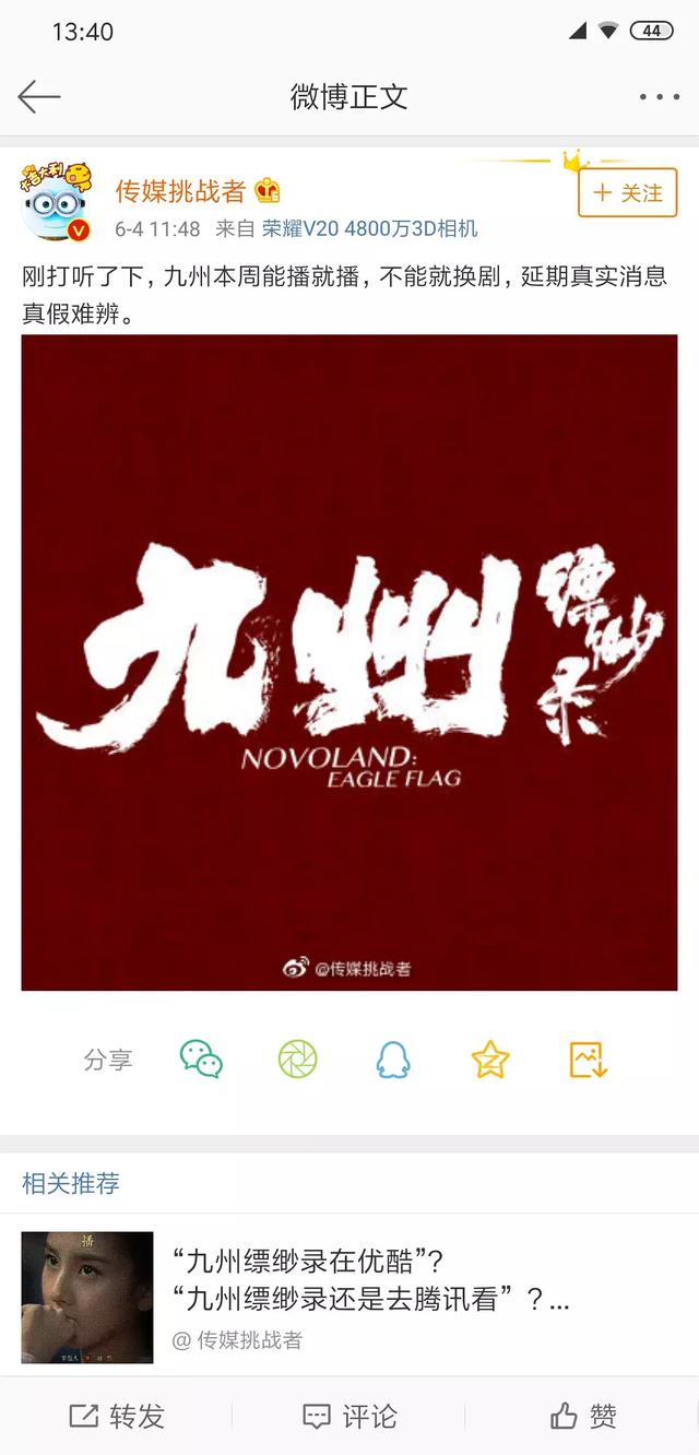 借有爆料称,《九州缥缈录》能播便播不克不及播便换剧。