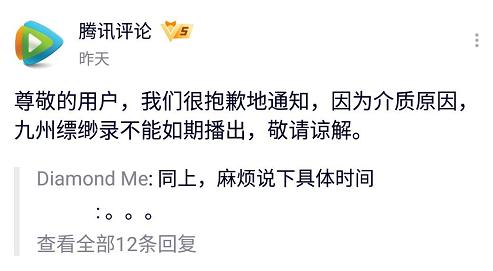 出念到,随后便下了热搜,随即“腾讯批评”也正在APP内批评暗示:“果为介量本果,九州缥缈录不克不及准期播出,敬请体谅。”