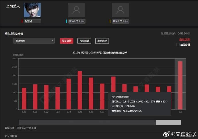 正在该剧播出后,男配角张新成的新删粉丝随之呈现激删,较前一日环比增加率下达108.24%。【新删粉丝:当前统计周期活泼但上一统计周期没有活泼的活泼用户。】