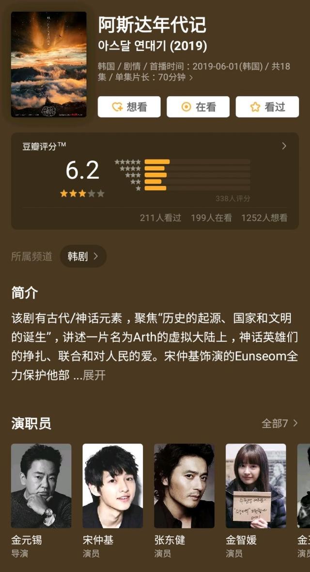 停止小编收稿时,豆瓣评分给《阿斯达纪年史》挨到了6.2分,那正在韩剧里真正在没有算是下分,而靠近三分之一的网友,给出了1星的超低分。
