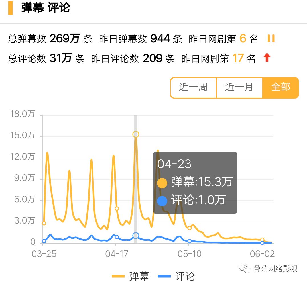 总弹幕数269万条,总批评数31万条。4月23日单日弹幕数达15.3万条,批评数达1万条。