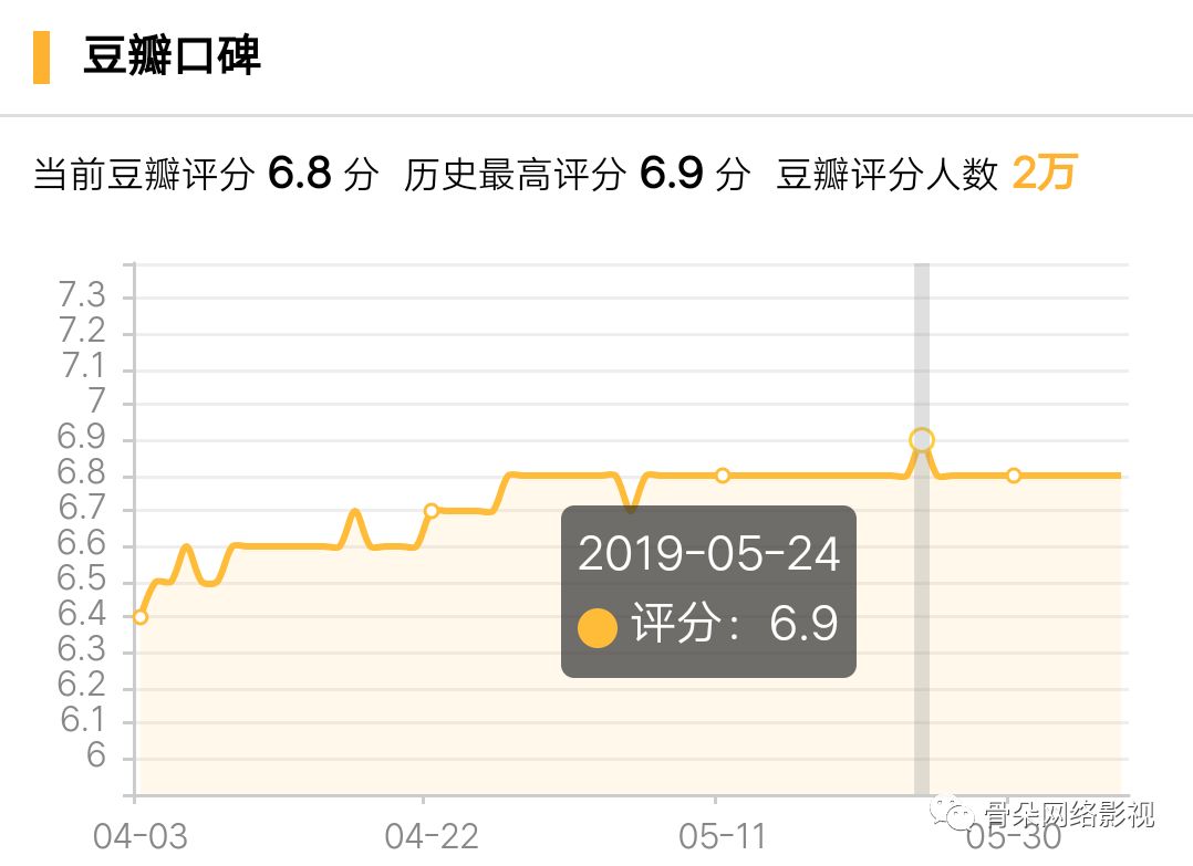 豆瓣评分人数2万,豆瓣汗青最下评分6.9分。