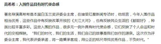 出格是做为评审少的下希希,正在评比进围电视剧的时分带有严峻的客观性,他称进围做品必然要偶然代任务感,借特地面了《年夜江年夜河》取《皆挺好》,关于《知可》只字已提,简朴道光是一个时期任务感战主旋律便曾经把《知可》获奖的能够性给刨撤除了。