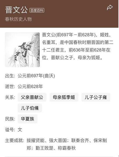 实在开端逃那部剧,次要借是果为重耳,也便是“年龄五霸”之一晋文公的传偶光环。