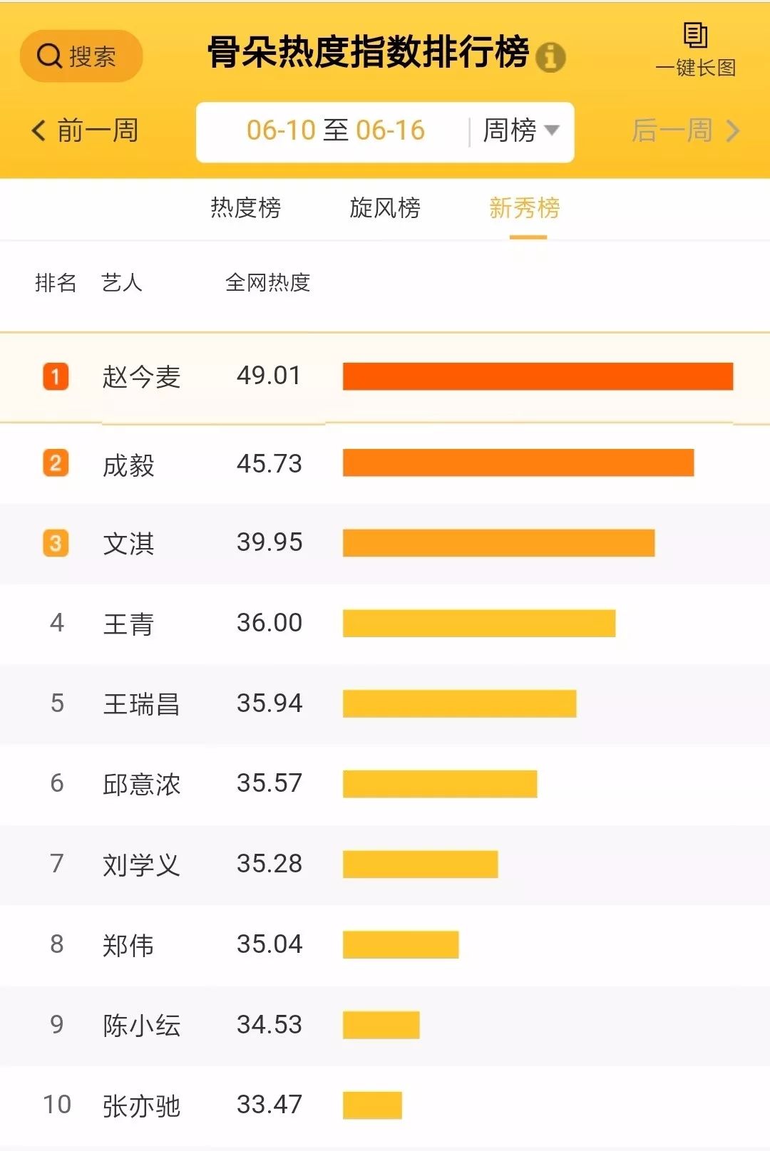 有热播剧《少年派》正在脚的赵古麦古次登顶,而取旧公司胜利解约的文淇排名不变,规复自在身的将来更让人等待。