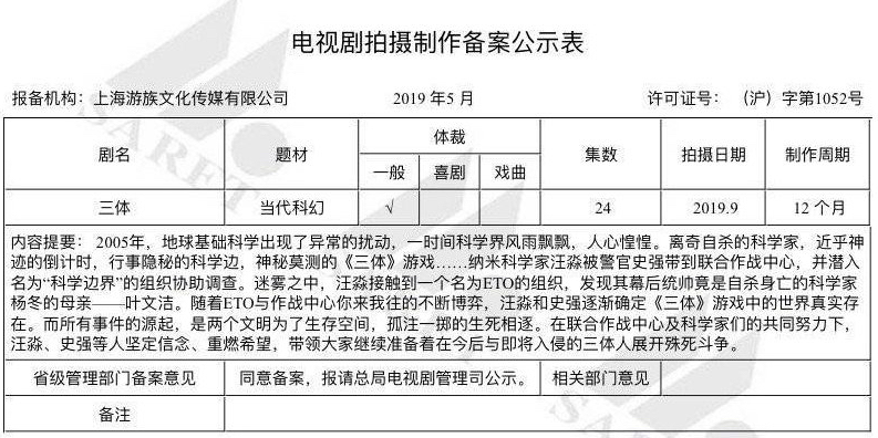 剧版《三体》正式经由过程广电总局#电视剧存案啦!广电总局5月电视剧存案公示显现,剧版《三体》由上海游族文明传媒有限公司出品,估计本年9月开拍,共24散,剧情根本取小道第一部不异。实在刘慈欣那部科幻巨著2015年曾拍摄影戏版,但已能完成前期造做并上映,而《漂泊天球》的胜利仿佛又证实了今朝国产影视造做火准已足以操作把持那部做品。
