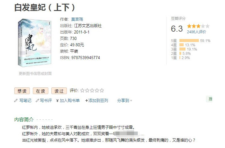 那部网剧的脚本滥觞于做者莫行殇写的《鹤发皇妃》,能够看到那部小道正在豆瓣之上的评分其实不下,只要6.3分,并且对那本小挨分的读者也很少,只要2486人。比起《三死三世十里桃花》的7.9,74555人评价,《喷鼻蜜沉沉烬如霜》的7.5分,14146人评价去道,《鹤发》正在出名度战心碑上皆好了很多级。