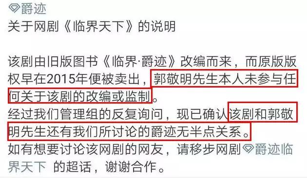 剧版曾收声明,电视剧版权早正在2015年便购好了。