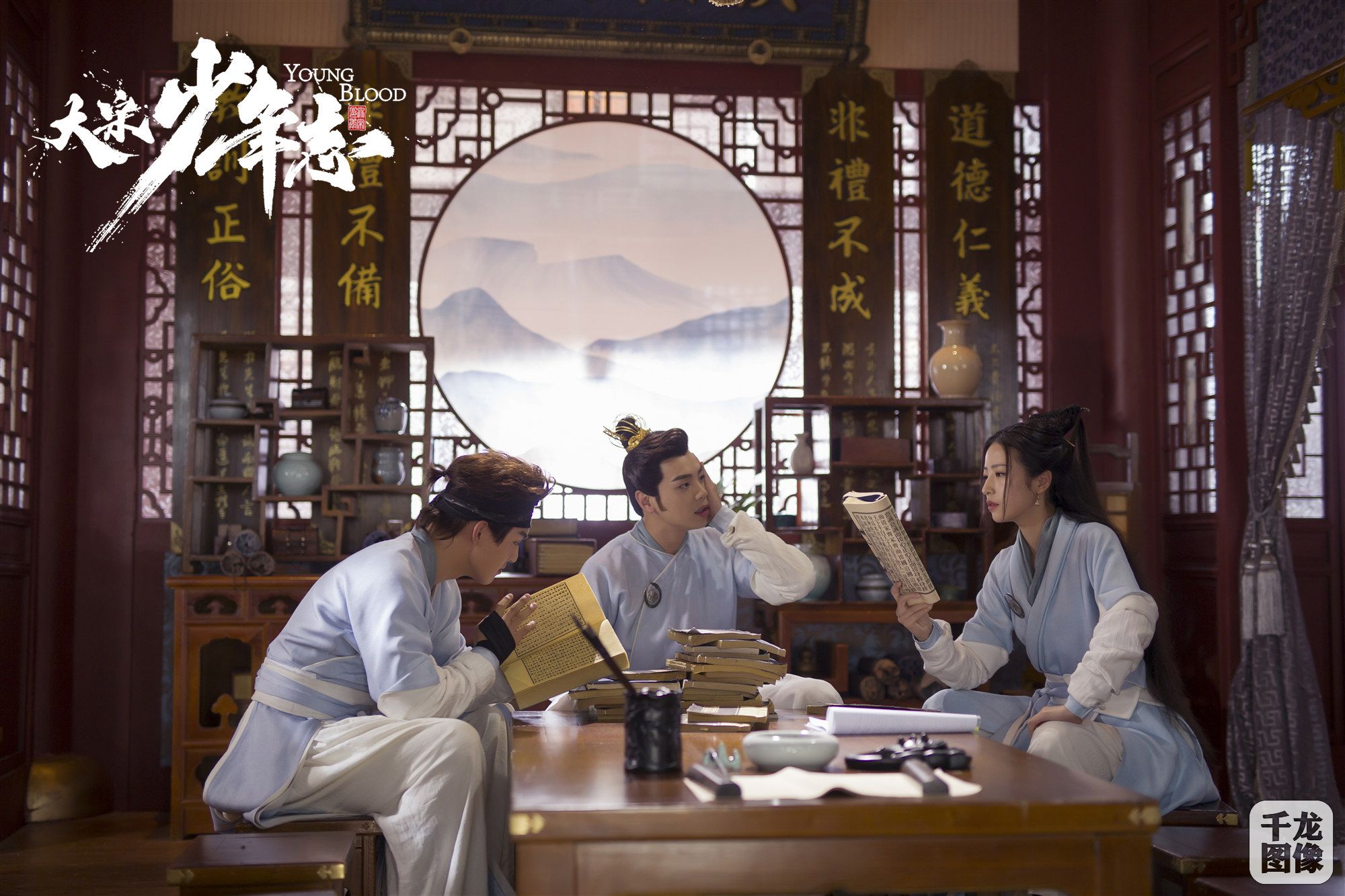 此次海报接纳颇具中国风特征的构图情势,经由过程白取蓝、水取云的奇妙交融,勾画出“第七斋”少年好逸恶劳的热血风格:元仲辛一改桀骜恶劣的形象,神色刚毅凌厉,似要年夜展一番拳足;赵简体态潇洒,冷傲单眸中凸隐侠骨英姿;王宽温润令郎的形象深化民气,但此时庄重沉思的备战神色,流露着一丝恐惧坚决; 而薛映取韦衙内一个庄重慌张、一个云浓风沉,将两人逗趣却没有得凛然年夜气的脚色特量明显释出;裴景眼神灵动,持花而坐,让不雅寡非常等待那个纯真少女接下去会有如何意念没有到的“奇异”操纵。