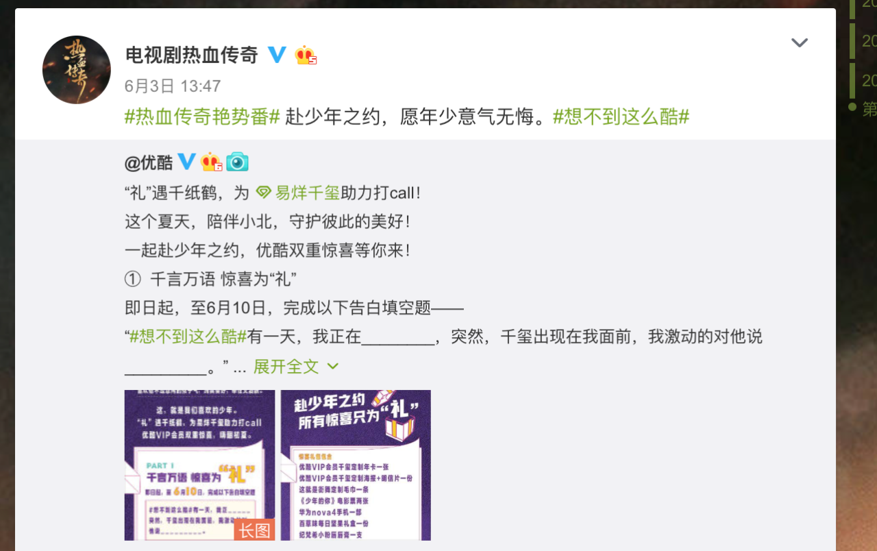 另外一部易烊千玺战黄子韬主演的《素势番之新青年》,也早早达成尔后播出指日可待。今朝那部剧曾经更名为《热血传偶》。至于播出工夫则是一个年夜年夜的已知数,此前那部剧的民微初末主动为易烊千玺《少年的您》中的脚色小北挨告白,现在却皆成了苦等的“易兄易弟”。