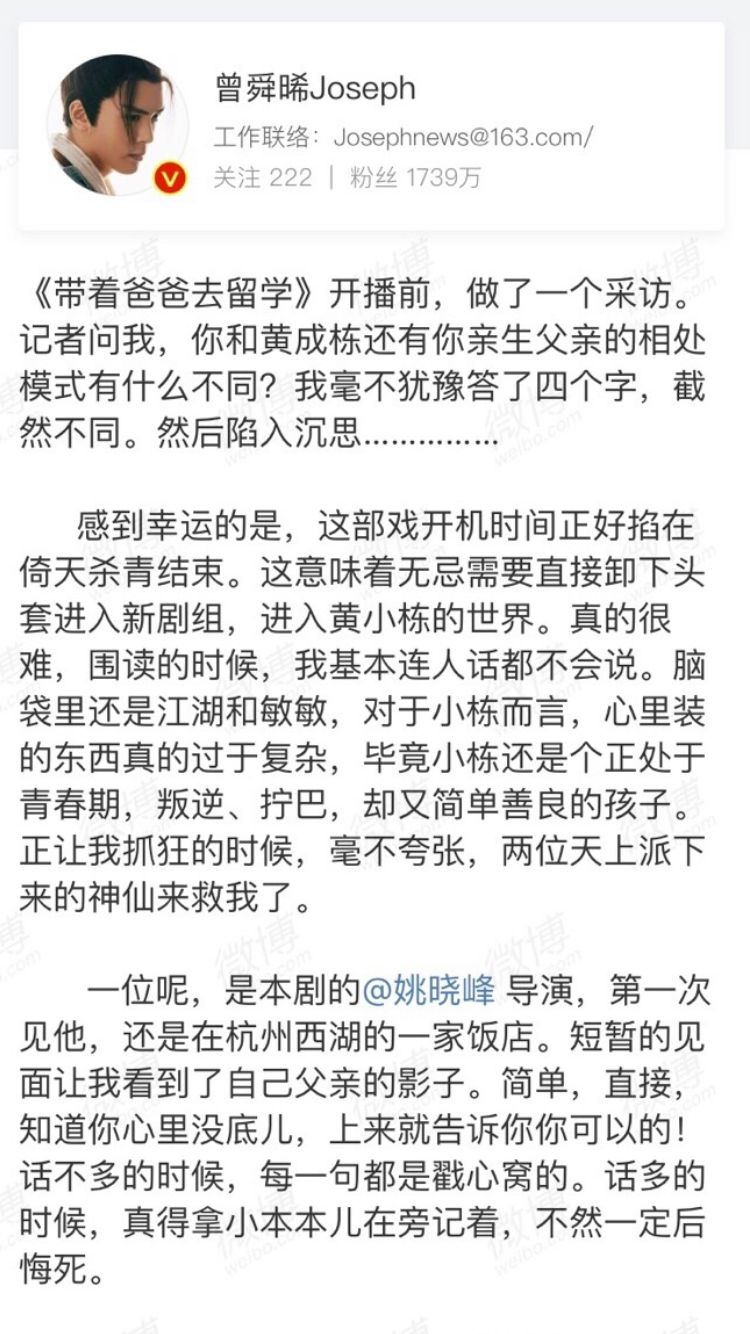 曾舜晞关于演员之路的热诚取谦虚勤学的立场,只需对他稍有存眷的人便可以感触感染获得。他不只为了《带着爸爸来留教》写了布满诚心诚意的“小做文”,险些每部戏剧取综艺的完毕之际,他城市正在微专上热诚的写下一篇“小做文”,存心记载那此中的每一个霎时。