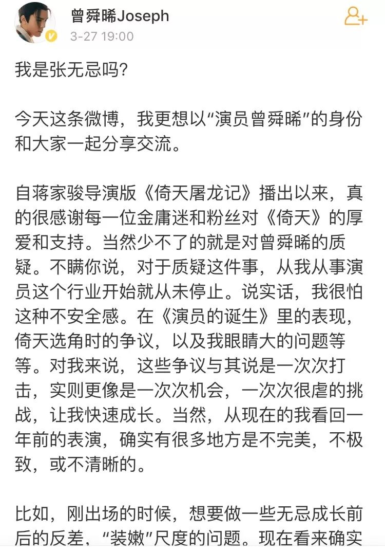 芭姐最后觉得曾舜晞可以演的那么好,是果为他借是个少年,多几少有些“本质出演”的身分搀杂正在演技当中。但自从看了他正在剧散开播前,收正在微专上的一篇“小做文”后,便对他的超卓演技有了更深一层的认知。大概正在大都民气中,颜值取演技不克不及同刻比肩,而曾舜晞则用本人的勤奋研究证明,只需您故意,统统城市好像“本质出演”。