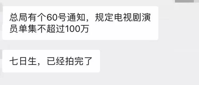 《七日死》那部电视剧的拍摄工夫,该当是正在2018年5月至10月,可是各年夜网站个人联名请求限定艺人片酬的划定(也便是限薪令),则是正在2018年8月份才推出的。
