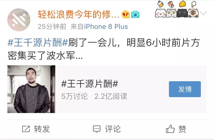 正在那件工作暴光以后,正在爆料推文上面根本上齐是浑一色天抵抗王千源天价报酬的工作,明眼人一眼便能够看出去,那是很较着的火军批评。