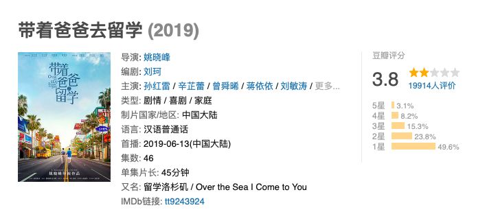 《带着爸爸来留教》是孙白雷时隔三年后的一鼎力做,但使人不测的是,剧情借出停止到一半,评分便跌至3.8,成了孙白雷演的电视剧中心碑最好的存正在。