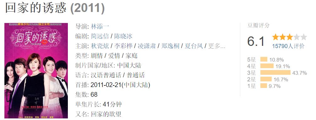 《回家的引诱》正在2011年播出后均匀支视为3.46,排名第一。