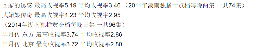 据统计,从2005年到2017年,齐国一共有16部每散支视率皆破2的电视剧。