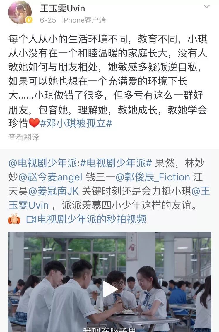 除自拍战玩乐,正在她的微专中,最常呈现的便是事情了,险些80%的微专皆正在宣扬本人的新剧,而远期的微专,更是被《少年派》完全启包,从她的字里止间,没有好看出她对邓小琪那个脚色的没有舍、迷恋取喜欢,实的是进戏很深吶!那样的敬业肉体战专业主义涵养也为她圈去了无数新粉。