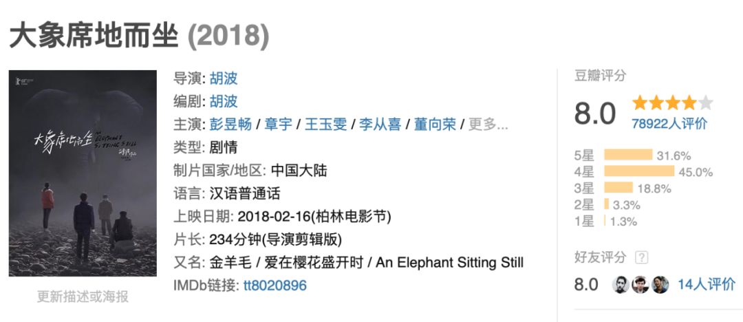 正在《少年派》之前,实在王玉雯便曾经出演了许多热点的影戏战电视剧,此中便有豆瓣8.0分的《年夜象席天而坐》,也是金马奖的最好剧情片。