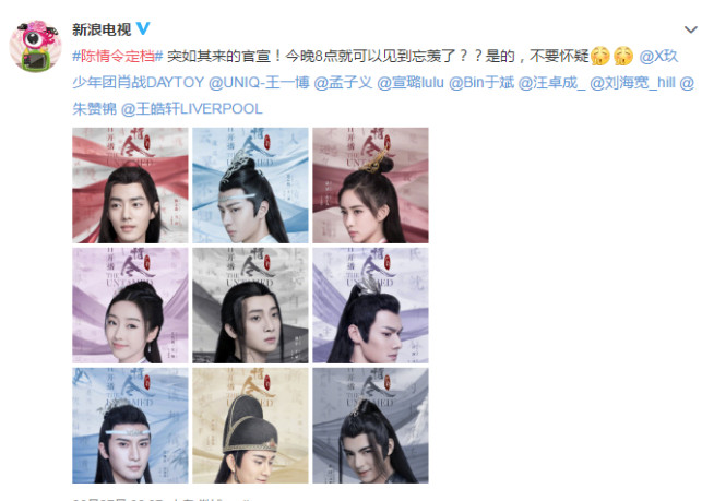 尾先《陈情令》是裸宣即民宣定档战尾播工夫是统一天!6月27日,上午九面方才民宣,成果早晨八面便间接碰头了,是否是有面突如其去的觉得?公然6月27日是能够载进文娱圈史册的奇异的一天。