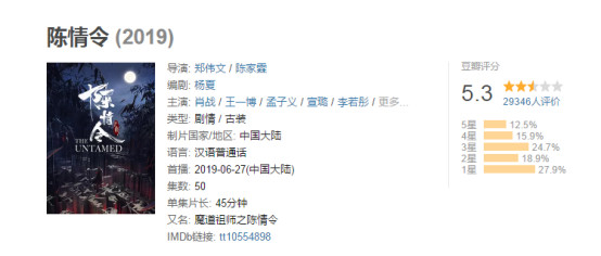 再去道道那部剧,畴前期的剧散改名、到演员争议等等一系列的风浪让人以为它能够又是一部指日可待的剧。但是,群众对它的等待却又促使那部剧末睹天日,果为它头顶一个宏大的噱头——年夜热的《魔讲祖师》改编,那是来年风评很下的动绘网剧,豆瓣评分8.9!