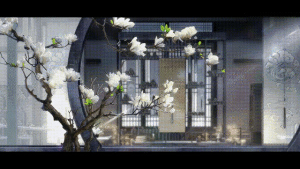 动绘版《魔讲祖师》情节停止到魏无羡被禁足躲书阁被奖抄书一月时,为了表示光阴流转,操纵的脚法是将镜头定格正在躲书阁庭前的玉兰树,让绘里的光芒从明到暗又从暗到明,以表光阴的流逝,既诗意又非分特别又古风的神韵,可谓完善。