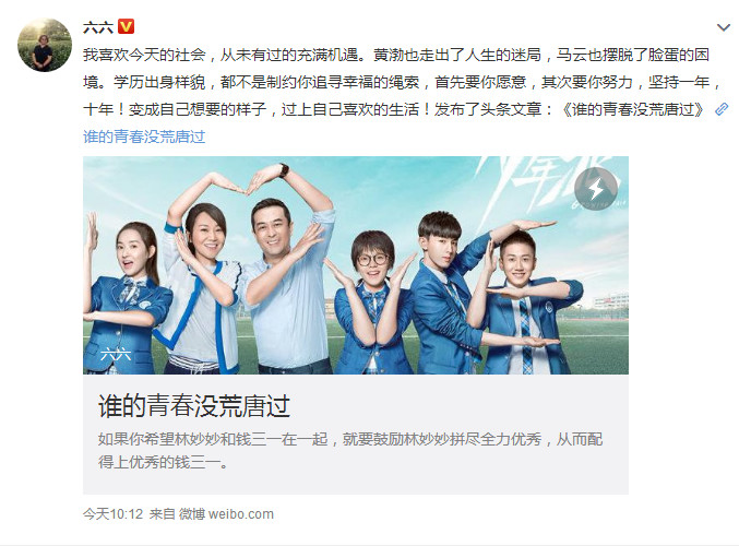 有网友道:那多出去的一散完整是为了宣扬郑爽的新剧《流淌的美妙光阴》,小扒每看一次那个名字便念笑一次,当初小扒顶着下考的压力看完《悲戚顺流成河》那本小道,烦闷了一个早自习,剧中的人物皆是悲戚的脚色,那里有半分的“美妙光阴”!