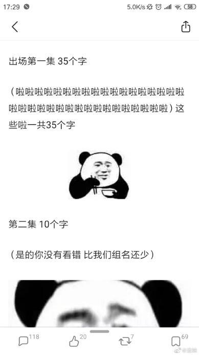 看粉丝统计数据,蓝记机第一散道了35个字,第两散道了10个字,第三散的172个字,次要借是集合正在违背了蓝氏家规上里,第四散87个字,晓得第五散才末于有204个字。