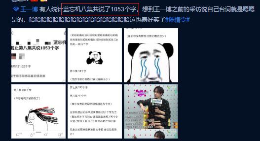 逃剧的小同伴皆晓得蓝记机话很少,可是终究少到甚么境界呢?看了粉丝统计,蓝记机进场八散共道了1053个字,那惜字如金的水平,实的是太恐怖也太可笑啦。