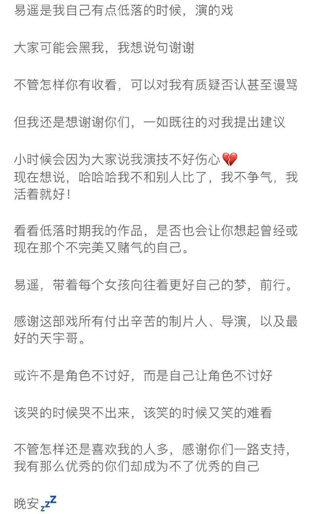 而关于不雅寡的吐槽,郑爽自己也正在开播前便挨了防备针,她坦行易远那个脚色是本人感情降低时接的,大概没有是脚色没有奉迎,是本人显现天不敷好,该哭的时分哭没有出去,该笑的时分又笑的好看,以是便算是量疑以至是咒骂,她内心皆暗示感激。小时分会果为各人道本人演技欠好悲伤,现在不再念战人比。究竟结果借有许多喜好本人的人,她也感慨,本人有那末多优良的人喜好,但是却成没有了优良的本人。