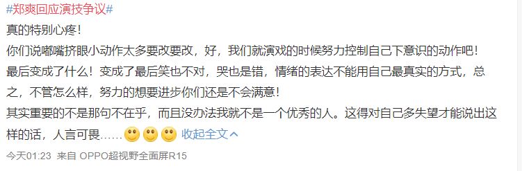 本题目:郑爽亲身回应争议,降低期实的是演技好的托言
